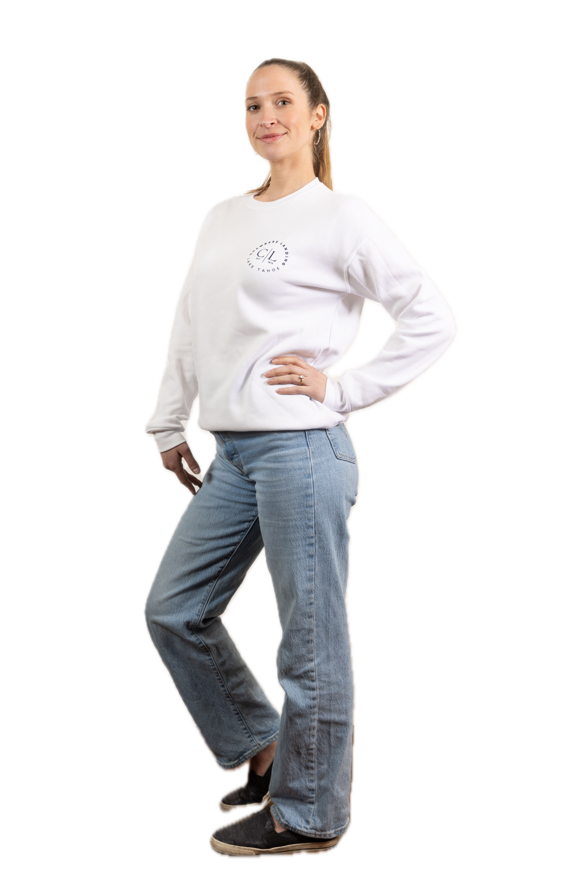 White Crewneck Sweater with Navy Chambers Landing Logo- Ultimate Comfort!